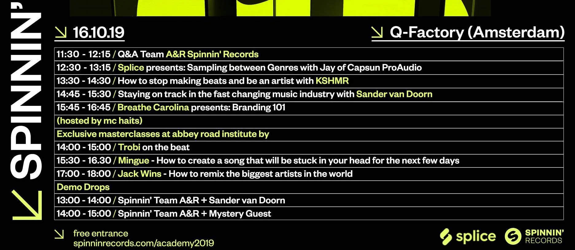 On Wednesday, October 16th, we are teaming up with Spinnin’ Records for their yearly organised Spinnin’ Academy. During ADE, Spinnin’ Academy is the place to be for producers who want to broaden their skillset in producing and their knowledge of the music industry.